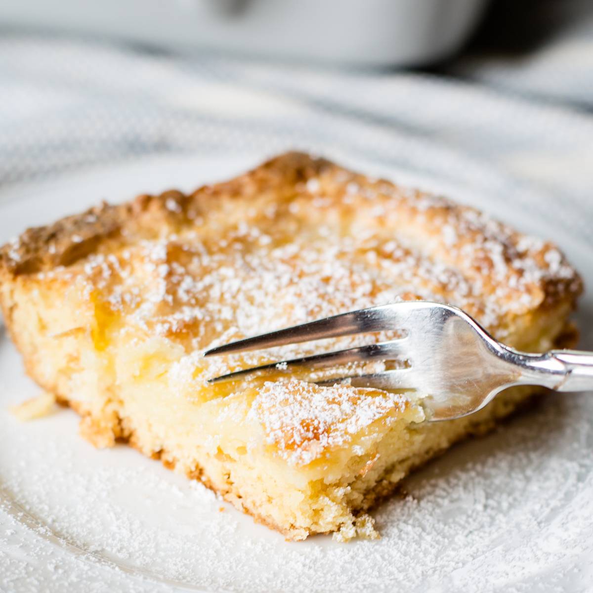 The best ooey gooey butter cake recipe! Start with a layer of pound cake (using a box mix) and top with a creamy layer. This easy dessert recipe is the perfect addition to any meal.